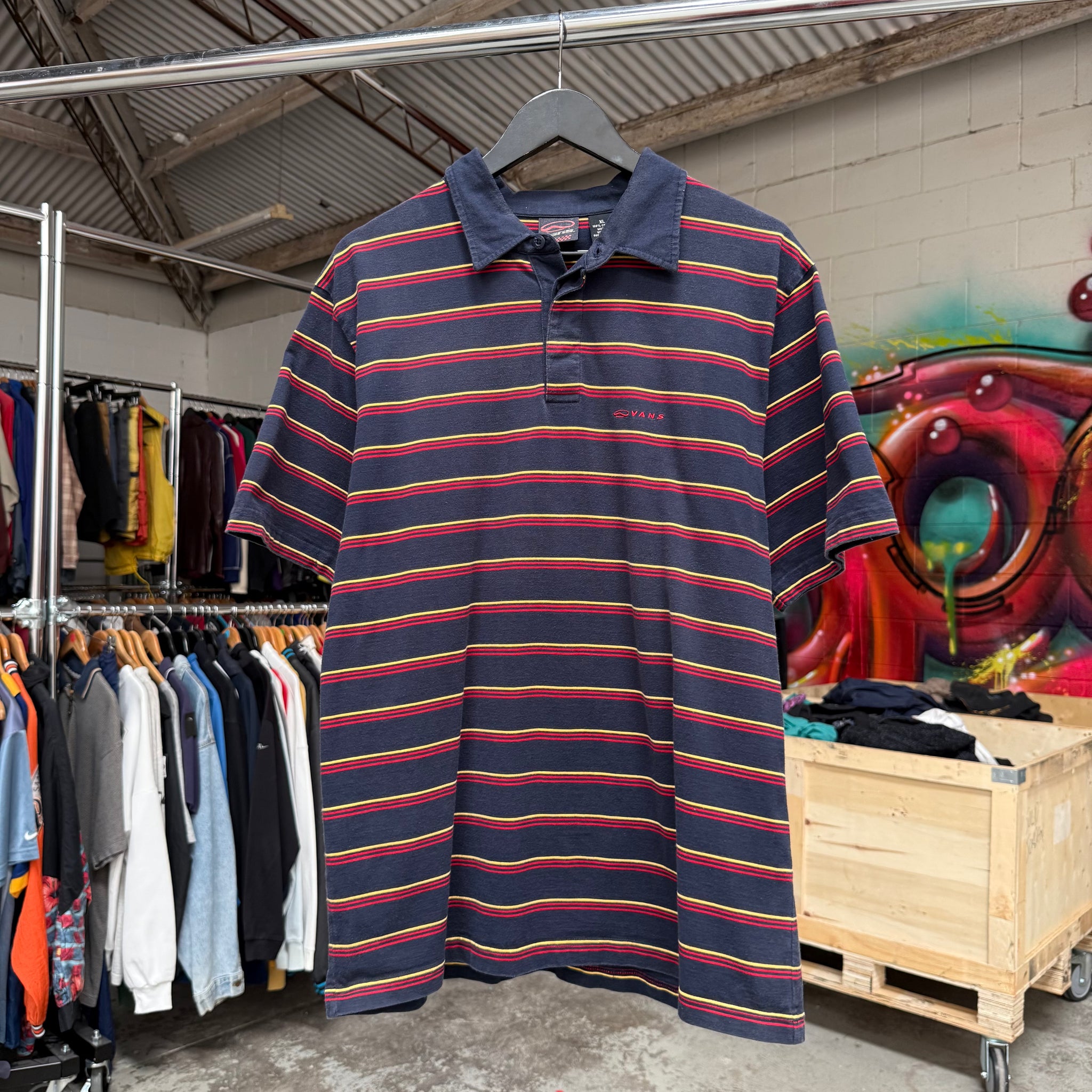 2000'S VANS STRIPED POLO SHIRT - L